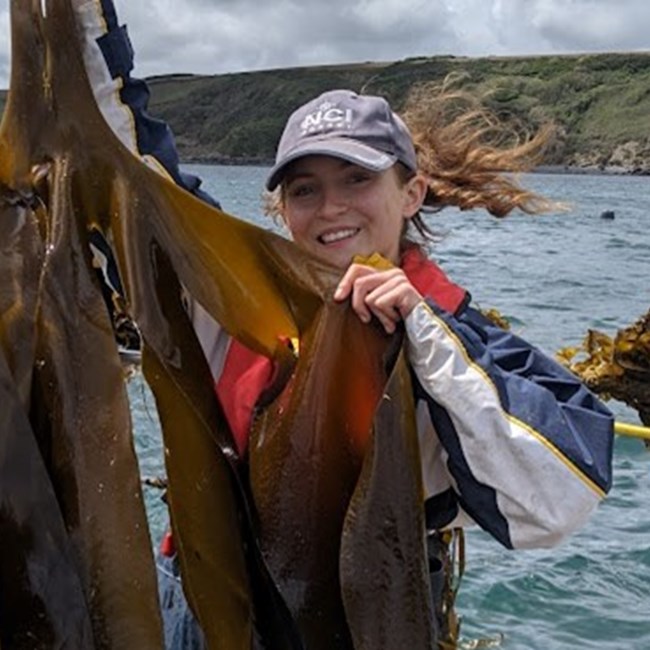 Sophie is a PhD student at the University of Exeter. Her project, “Evaluating and maximising the environmental benefits of seaweed farming in the Southwest”, focuses on quantifying the habitat value and biodiversity supported by seaweed farms. The aim of this work is to inform the regulation and development of ecosystem-based approaches to aid in the expansion of seaweed cultivation around the UK. Sophie will identify the potential of farms to create spawning and nursery habitats and assess the invertebrate communities they support compared to wild kelp populations. Her PhD is in partnership with the Marine Biological Association (MBA), Cefas, SWEEP, and the Fishmonger’s Charitable Trust.